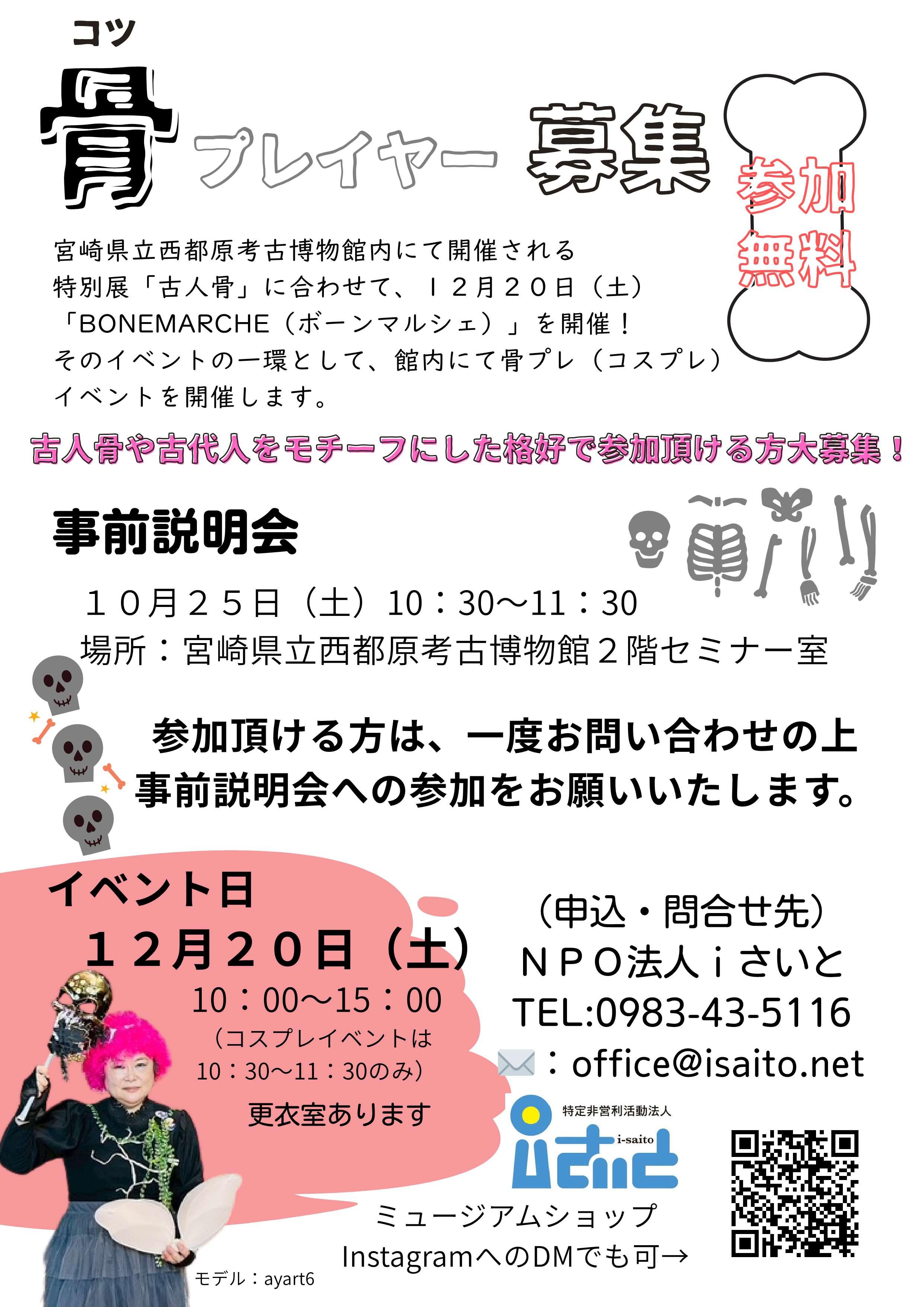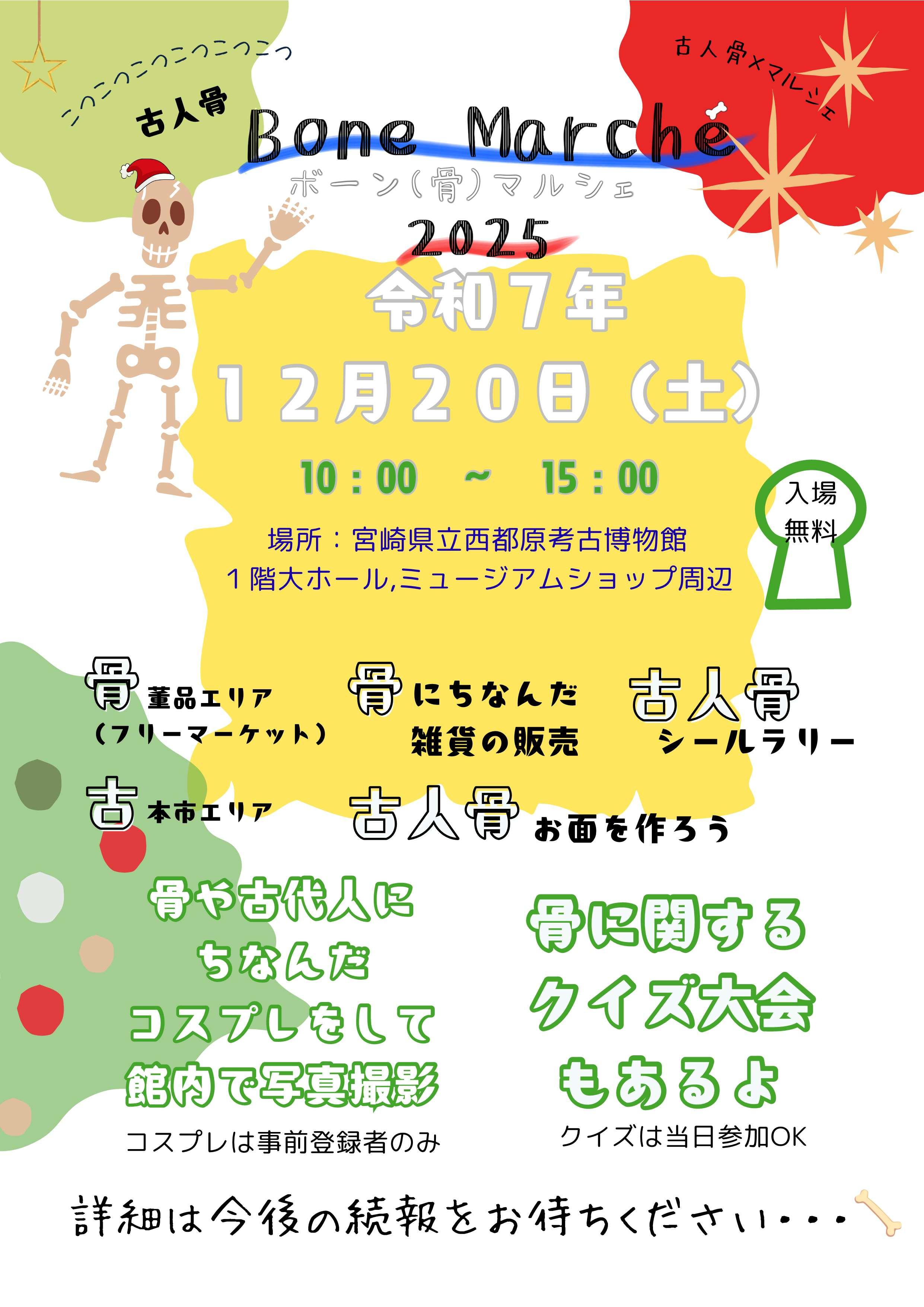 12月20日(土) に開催される骨をテーマとしたマルシェが西都原考古博物館の1階で開催されます。