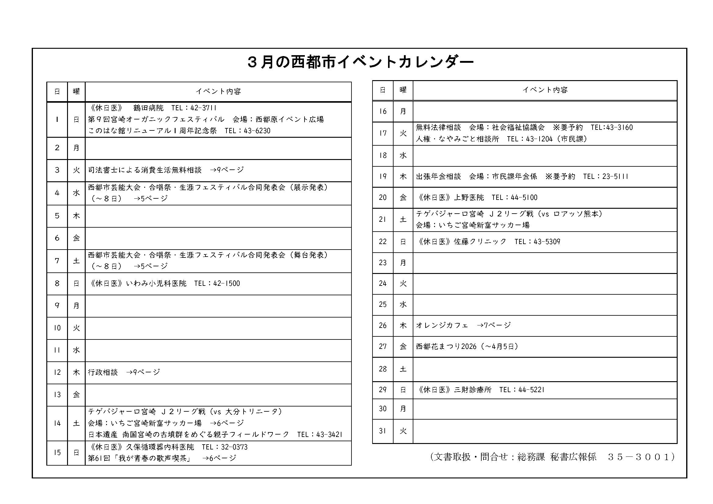 | 電話 | (行政)0983-43-1112 (職員)0983-32-1007 (秘書)0983-43-3110 (広報)0983-35-3001 |